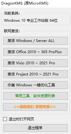 KMS在线激活Win11 / 10 / 8 / 7和Office / Visio / Project 2021~2010之DragonKMS神龙版